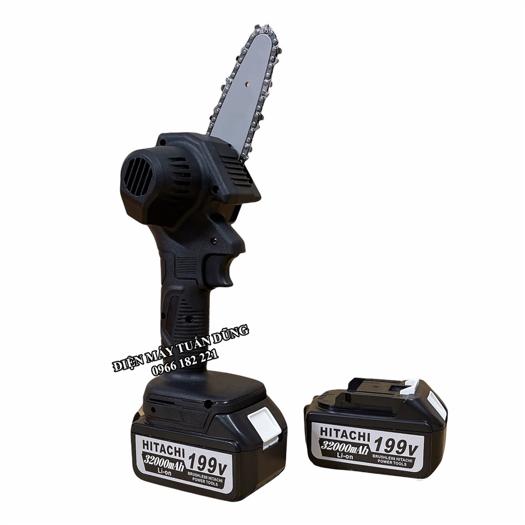 Máy cưa xích chạy pin Hitachi KÈM 02 PIN 199V Dụng cụ chuyên cắt tỉa cành cây hiệu quả cao