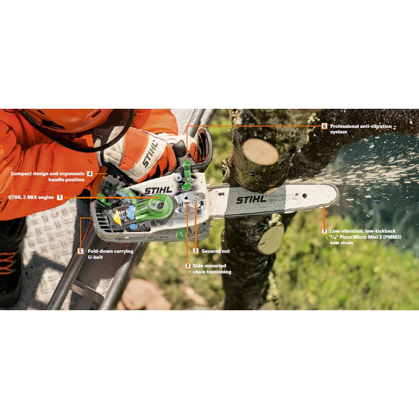 Máy cưa xích STIHL MS194T là dòng sản phẩm được thiết kế riêng cho những công việc nhẹ, thích hợp cho những hộ gia đình, làm vườn, chăm sóc cảnh quan, dịch vụ phát quang lưới điện và những công việc cắt tỉa cành nhánh cây ở trên cao. Kích thước nhỏ gọn, trọng lượng máy nhẹ là một lợi thế để làm việc an toàn và hiệu quả hơn.