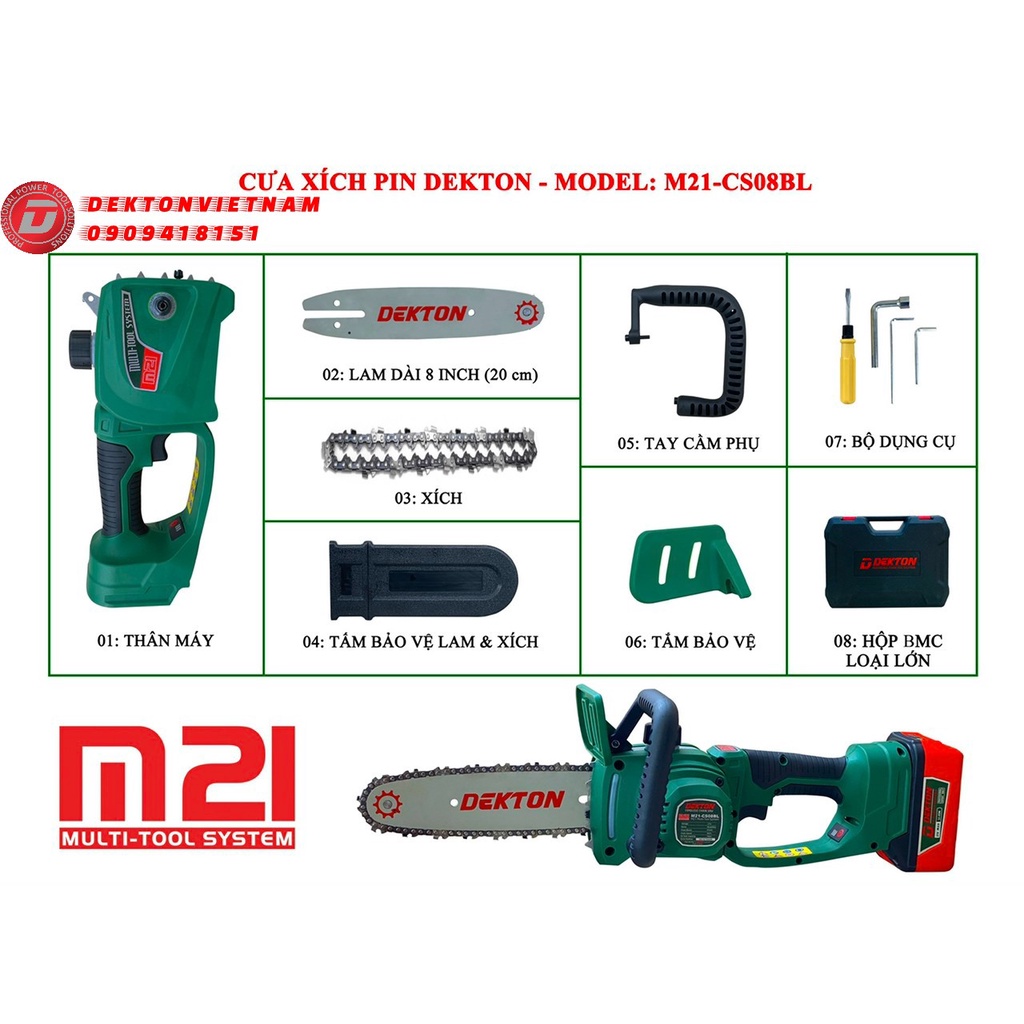 Máy Cưa Xích Pin Dekton Lam 8IN Motor Brushless - Bình Dầu Dung Tích 70MlModel :M21-CS08BL