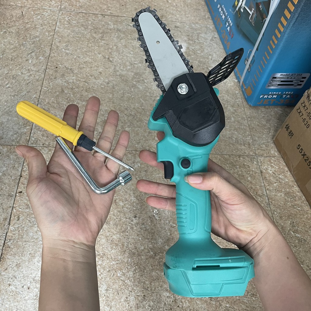 Công việc cắt tỉa các cành nhánh kích thước to hay cắt cành nhánh số lượng cây lớn với các công cụ kéo cắt cành cưa cắt cành thông thường trở nên mệt mỏi hiệu xuất thấp.Cưa xích cầm tay mini chạy pin là thế hệ công cụ làm vườn mới được sinh ra để giảm sức lao động tăng năng xuất hiệu quả làm vườn.- Chất liệu Kim loại + nhựa ABS độ bền cao