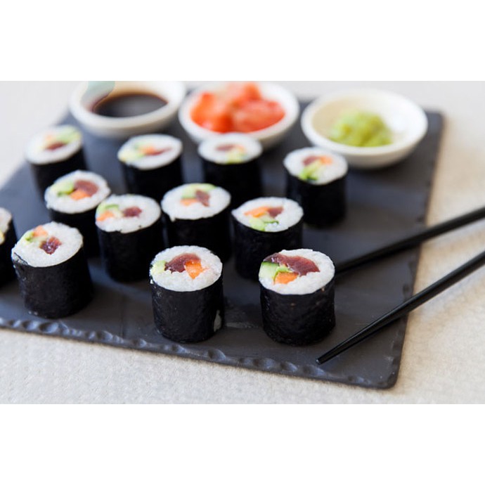Cho ra từng miếng sushi vừa ngon vừa đẹp mắt.