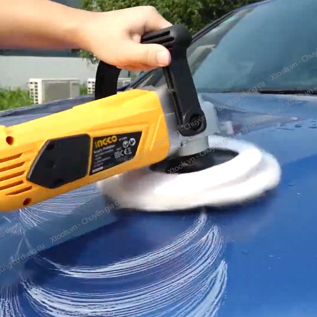 Giới thiệu Máy đánh bóng cầm tay INGCO AP14008 1400W máy đánh bóng ô tô, xe máy có đế cầm, tặng kèm 1 miếng bông đánh bóng