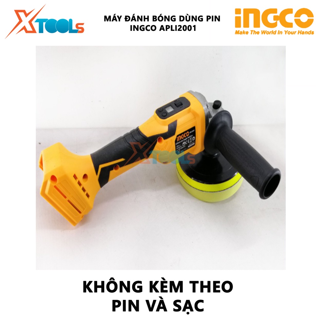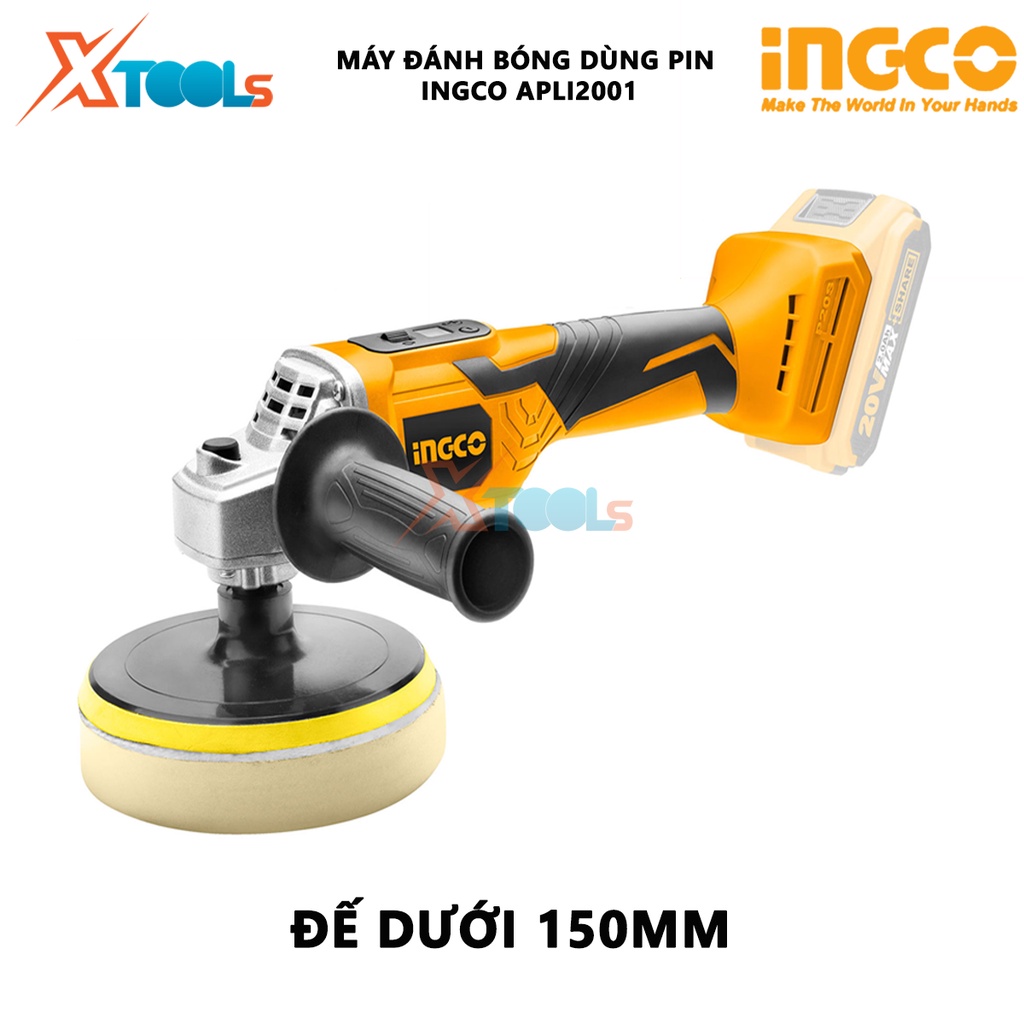 Máy đánh bóng dùng pin INGCO APLI2001 | máy đánh bóng cầm tay 20V, Tốc độ không tải 500-2800/p, Đế dưới 150mm, Không kèm