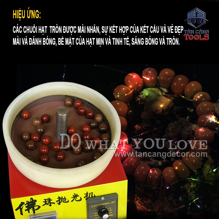 - Đường kính khay chứa 180mm.Khả năng đánh bóng hạt đường kính từ 5 đến 30mm