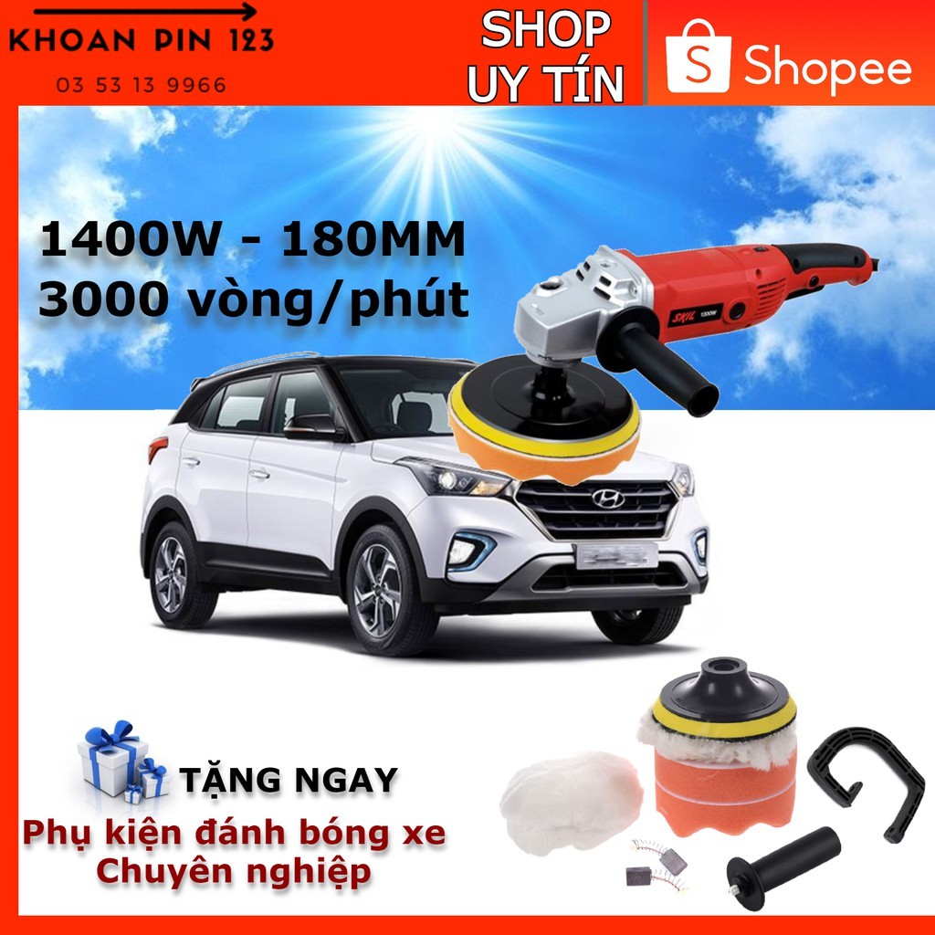 Máy đánh bóng xe hơi, chà gỗ, đá công suất 1400W 180mm M14 Polisher tặng nhiều phụ kiện