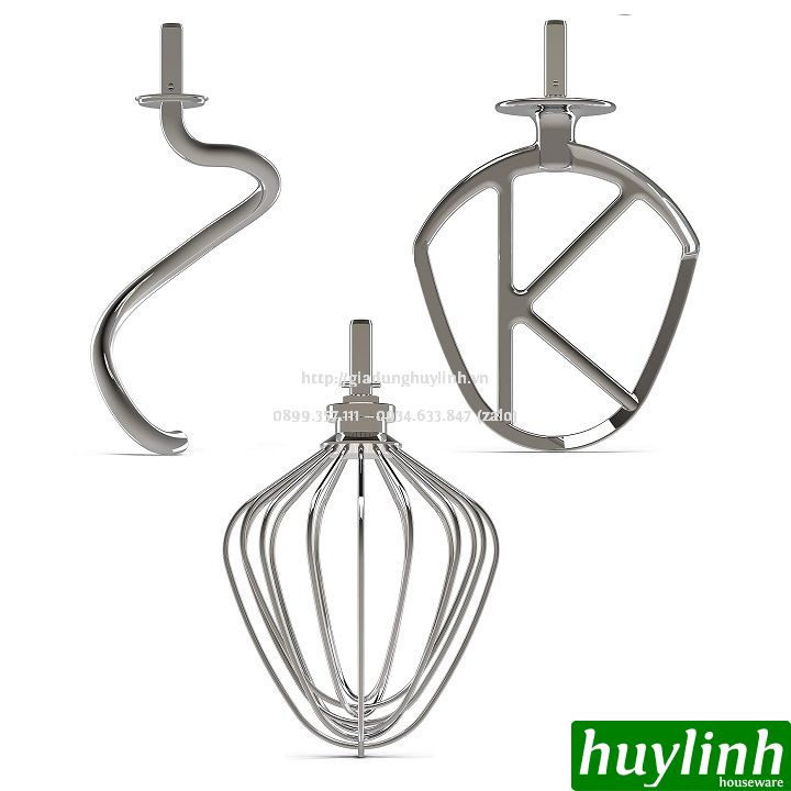 - Phụ kiện: 5 dụng cụ (đánh trứng; đánh kem; móc bột; folding; chữ K)