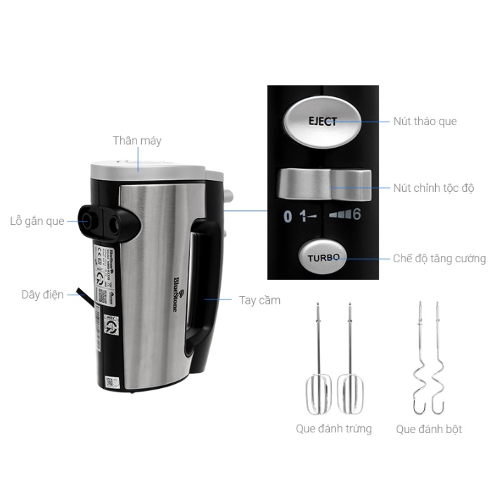 Giới thiệu [Mã ELHAMS5 giảm 6% đơn 300K] Máy Đánh Trứng BlueStone HMB-6333S, Công Suất 300w, Bảo Hành Chính Hãng 2 năm