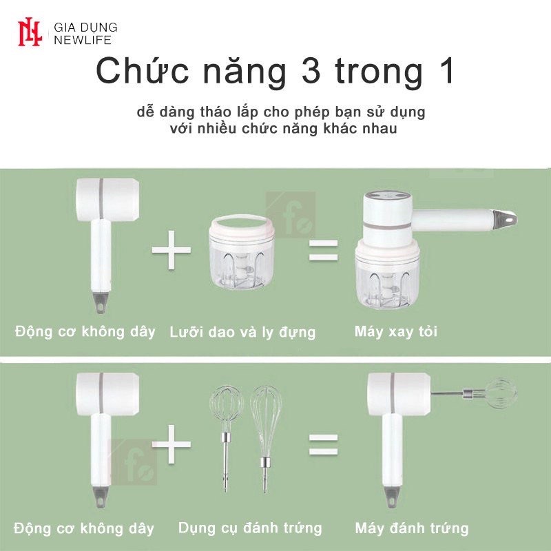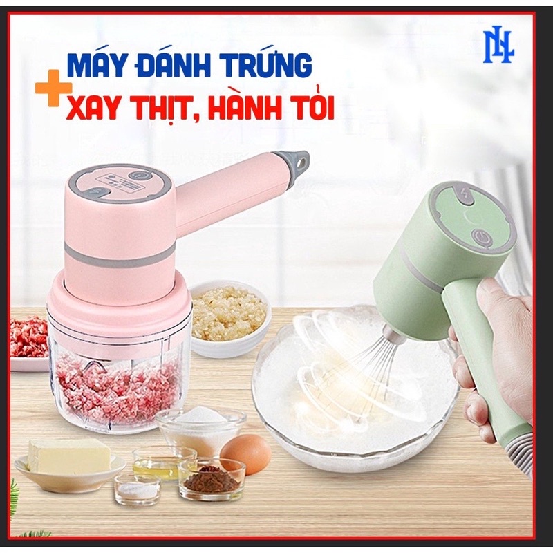 Máy Đánh Trứng Cầm Tay 3 trong 1 đa năng pin sạc MIFAN 2021 - Máy xay thịt tỏi ớt hạt tiêu đánh sữa cafe mini không dây