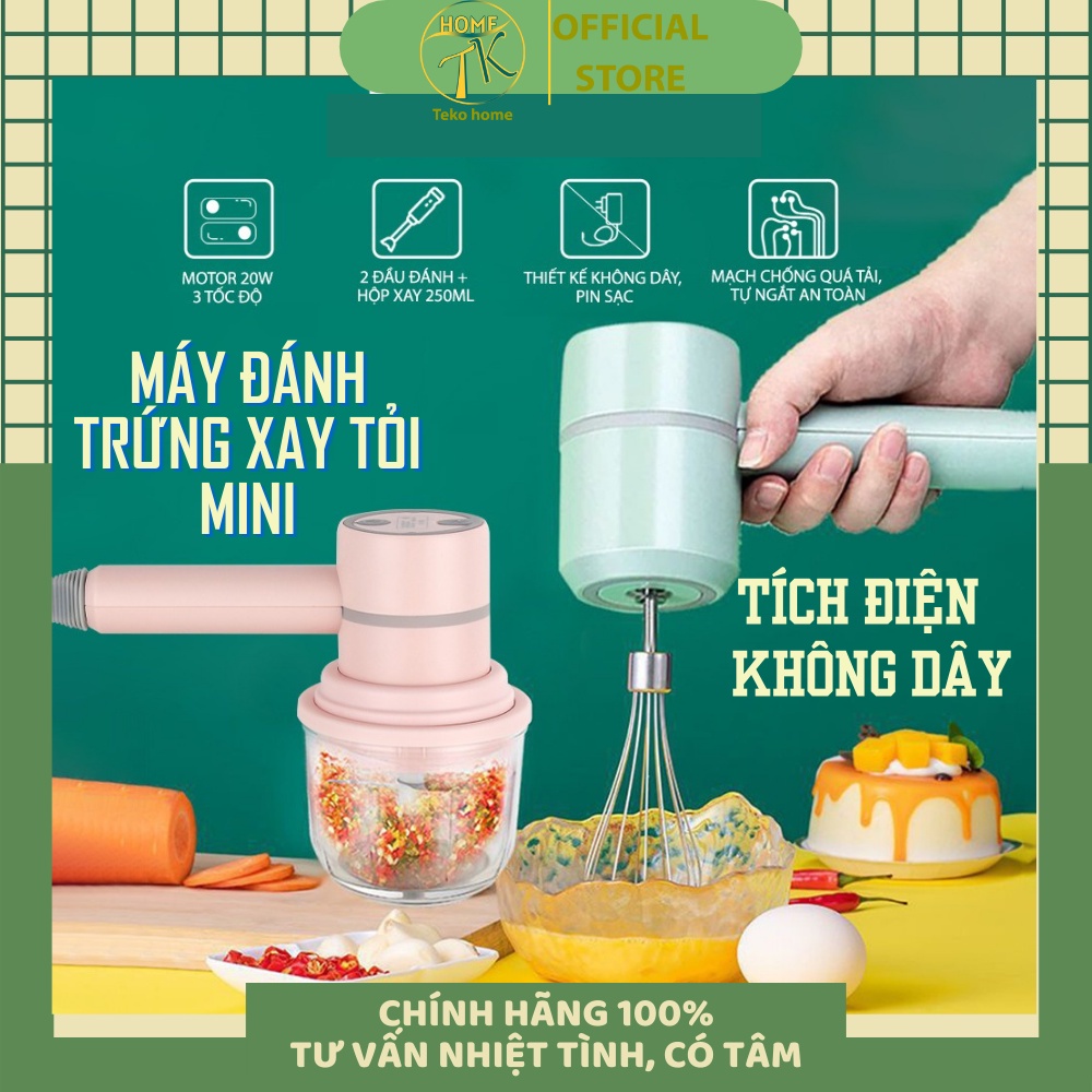 Máy Đánh Trứng Cầm Tay 3 trong 1 đa năng tích điện 2021 - Máy xay thịt tỏi ớt hạt tiêu đánh sữa cafe mini không dây