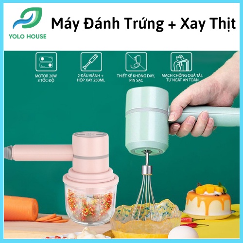 ✅THÔNG TIN SẢN PHẨM: Máy Đánh Trứng Cầm Tay 3 trong 1 đa năng pin sạc mẫu mới 2021 - Máy xay thịt tỏi ớt hạt tiêu đánh bọt sữa cafe mini không dây 3 tốc độ 2 đầu đánh- Màu sắc: Trắng, Xanh, Hồng