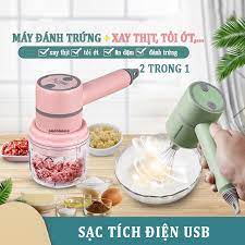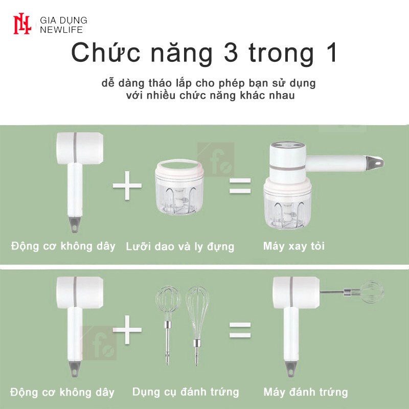 Máy Đánh Trứng Cầm Tay 3 trong 1 đa năng pin sạc Bảo hành 1 năm - Máy xay thịt tỏi ớt hạt tiêu đánh sữa cafe mini