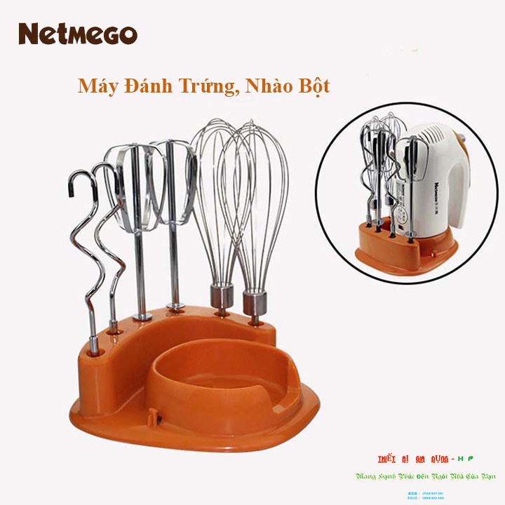 ✔️Máy đánh trứng cầm tay Netmego được làm với chất liệu nhựa chắc chắn, đi kèm máy là 6 que bằng inox cao cấp bền đẹp:2 que trộn, 2 que nhào, 2 que phới lồng.