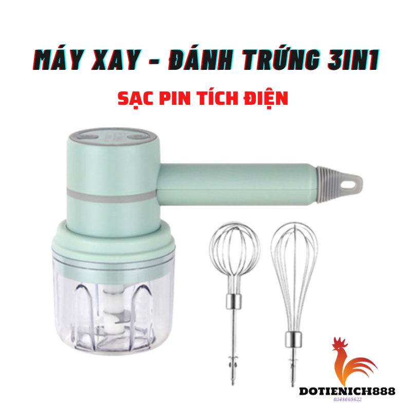 Máy đánh trứng cầm tay 3in1, máy xay thịt tỏi ớt đánh kem làm bánh không dây sạc pin tích điện