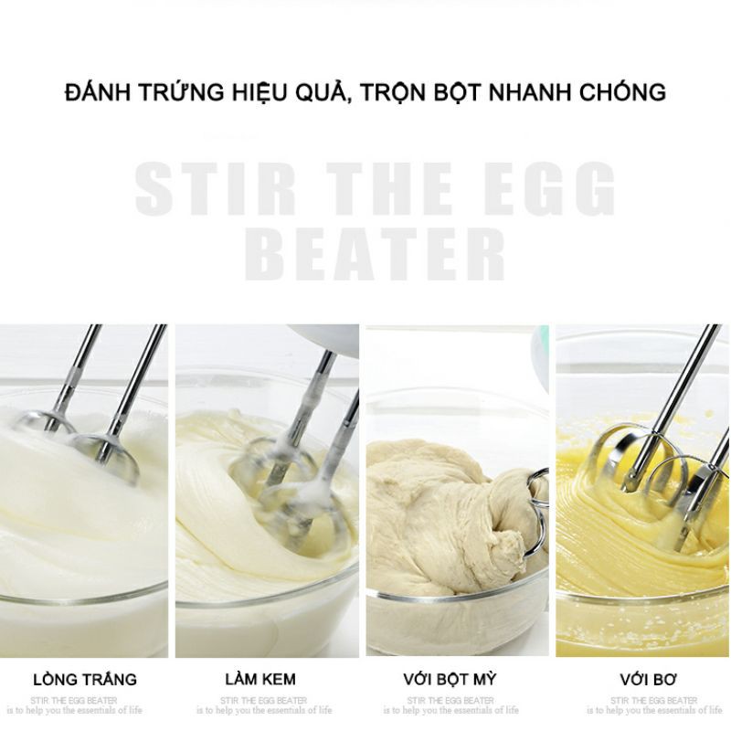 Bộ sản phẩm bao gồm: 01 x Máy đánh trứng, 04 x que inox đánh trứng