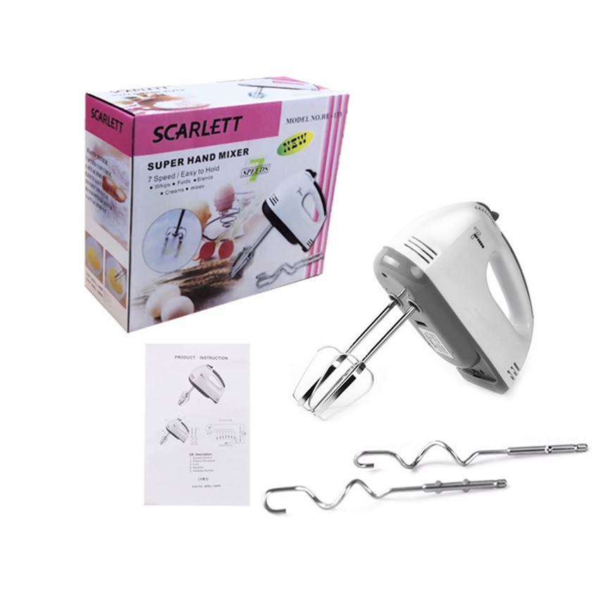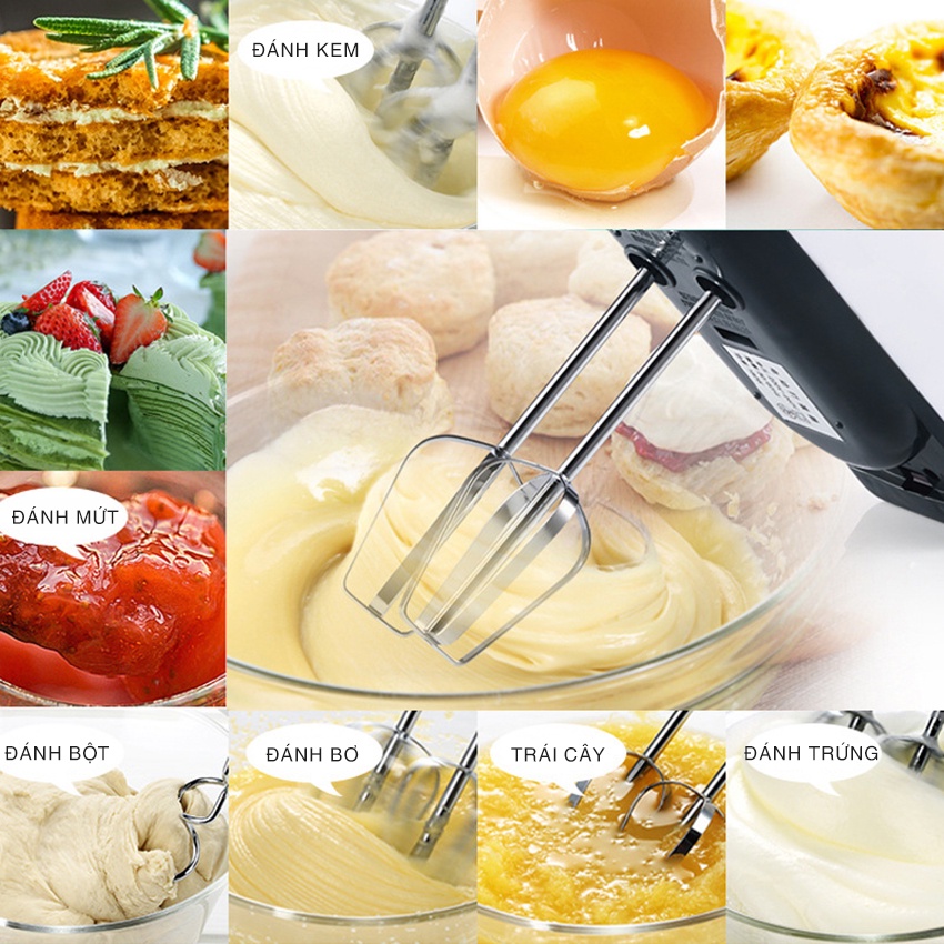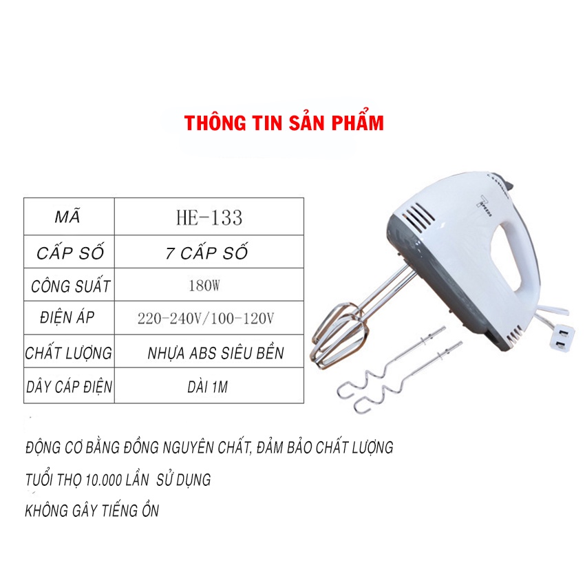 Máy đánh trứng cầm tay 7 cấp độ công suất 180W MILOHOUSE 111Đây là chiếc máy đánh trứng cầm tay tuyệt vời cho các mẹ. Là dạng máy cầm tay, nên các mẹ có thể đánh trứng ở bất kỳ đâu: trong chén to, trong ly/cốc, trong nồi... đều được. Máy đi kèm với 2 thanh đánh trứng 4 cạnh, và 2 que xoắn để nhào bột hoặc trộn salad. Que trộn làm từ inox, có thể tháo rời được, dùng xong chỉ cần tháo ra vệ sinh que trộn là xong.