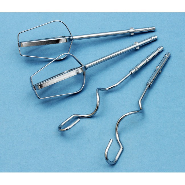 Máy trang bị 4 que , 2 que trộn và 2 que mốc nhào (bột lỏng) làm bằng inox không gỉ cao cấp, đảm bảo chất lượng, vệ sinh cho hỗn hợp trứng, kem, bột. Bộ dụng cụ hữu hiệu dùng cho các chức năng đánh trứng, và các loại thực phẩm khác