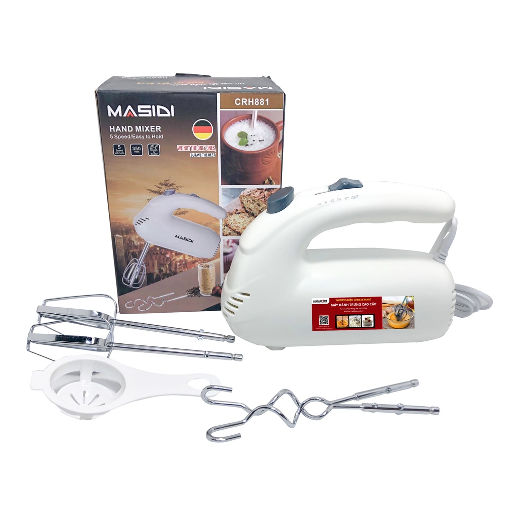 Sản phẩm bao gồm 1 thân máy 2 que trộn trứng và kem 2 móc nhào