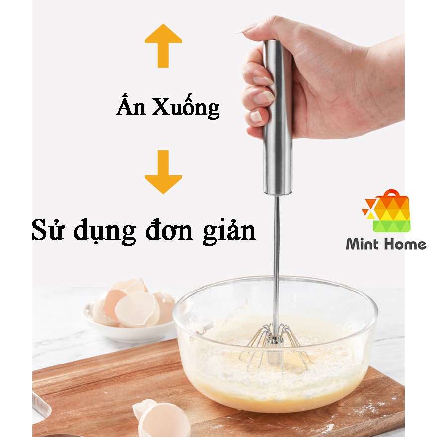 Máy đánh trứng cầm tay bán tự động thông minh, Cây phới lồng tròn đánh trứng thép không gỉ inox 304 có trục xoayDùng để tạo bọt, đánh bông kem, trứng sữa bằng cách ấn trục chuyển động lên xuống.