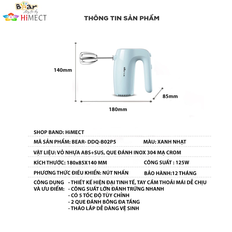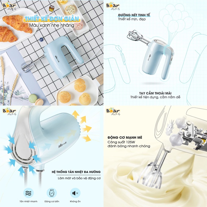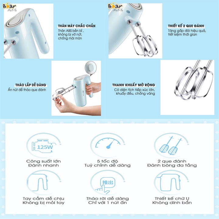Giới thiệu Máy đánh trứng cầm tay Bear, 5 tốc độ, CS 125W - HiMect