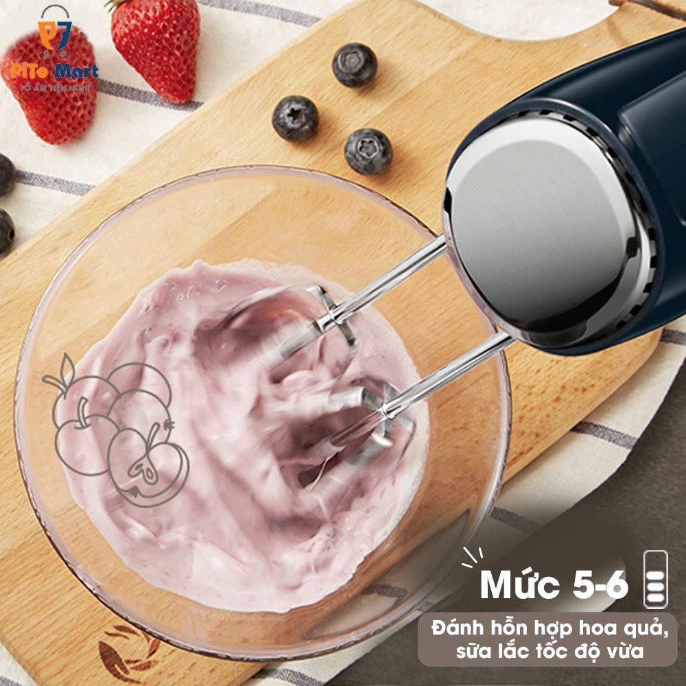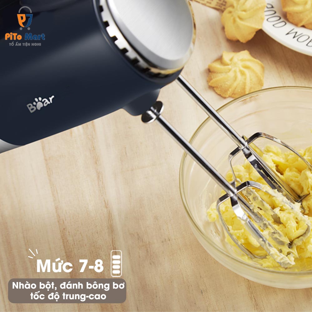 - Máy đánh trứng cầm tay Bear được tích hợp 2 tính năng: đánh trứng - trộn bột, kết hợp với công suất 300W mạnh mẽ và 10 tốc độ đánh, trộn khác nhau, máy đánh trứng cầm tay Bear DDQ-B02L1 (HM-B01V1) thực hiện tốt chức năng đánh bông kem tươi, lòng trắng trứng, bơ và nhào bột đạt chuẩn. 10 tốc độ đánh, trộn khác nhau, cho phép bạn tăng dần tốc độ đánh, trộn để cho ra các thành phẩm hoàn hảo nhất.
