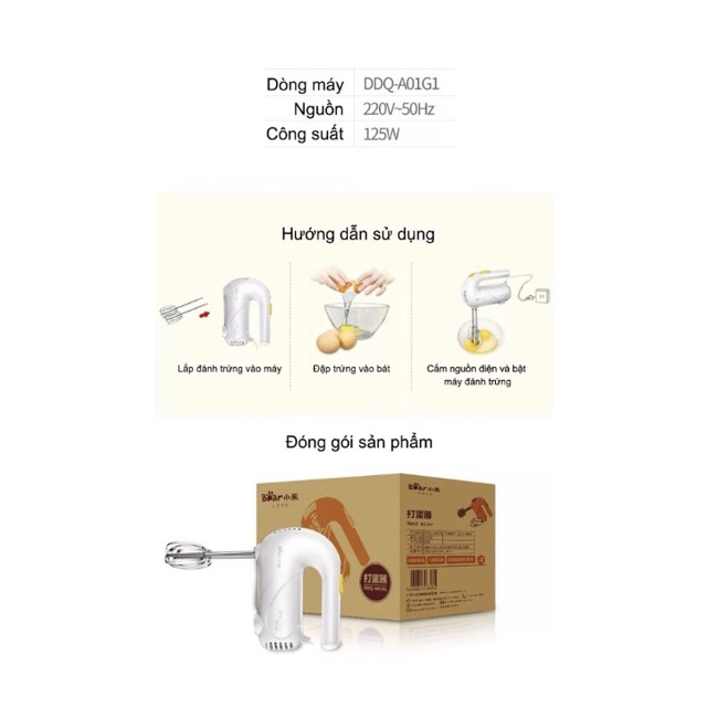 Máy đánh trứng cầm tay Bear DDQ-A01G1 5 tốc độ, không rung công suất 125WMáy đánh trứng Bear là sản phẩm chính hãng của Bear - Chuyên cung cấp thiết bị cao cấp với thiết kế khác biệt, không chỉ tiện dụng mà còn thời trang, mang lại những nét đột phá trong phong cách sống.