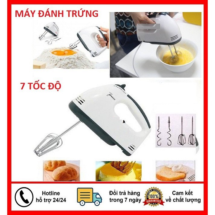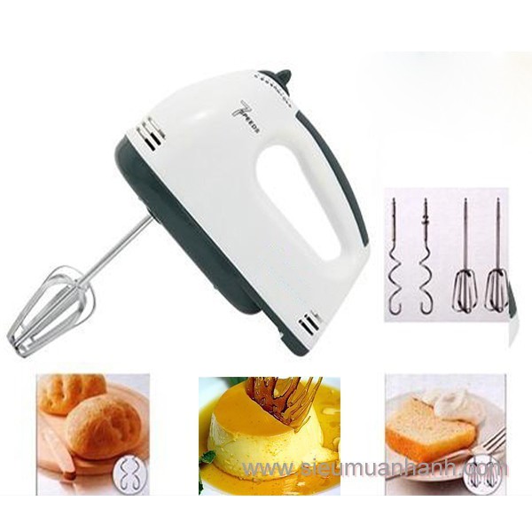 Cuộc sống bận rộn, dành thời gian bên gia đình với các món ăn khoái khẩu góp phần làm ấm thêm tình cảm mọi người thân. Đối với người Việt Nam chúng ta những món trứng chiên, bánh Plan, bánh kem hay món bánh truyền thông làm từ bột luôn có mặt trong các bữa ăn, buổi tiệc sinh nhật, tiệc họp mặt. Công việc chuẩn bị nguyên liệu chế biến món ăn đó giờ đây vô cùng tiện dụng, dễ dàng và nhanh chóng với Máy Đánh Trứng 7 Tốc Độ, Thiết kế nhỏ gọn bạn không phải vất vả nhào bột, trộn trứng, rất tiết kiệm thời gian và điện năng.Được trang bị 4 que , 2 que trộn và 2 que nhào bột làm bằng inox không gỉ cao cấp, đảm bảo chất lượng, vệ sinh cho hỗn hợp trứng, kem, bột.