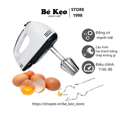 Máy đánh trứng cầm tay chính hãng 7 tốc độĐa năng: đánh trứng, đánh kem, đánh bơ, nhào bột bánh, trộn salad...