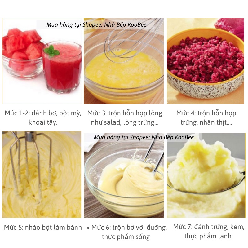 - Mức 7: Dùng đánh trứng, thực phẩm ở dạng đông lạnh như khoai tây, kem,...