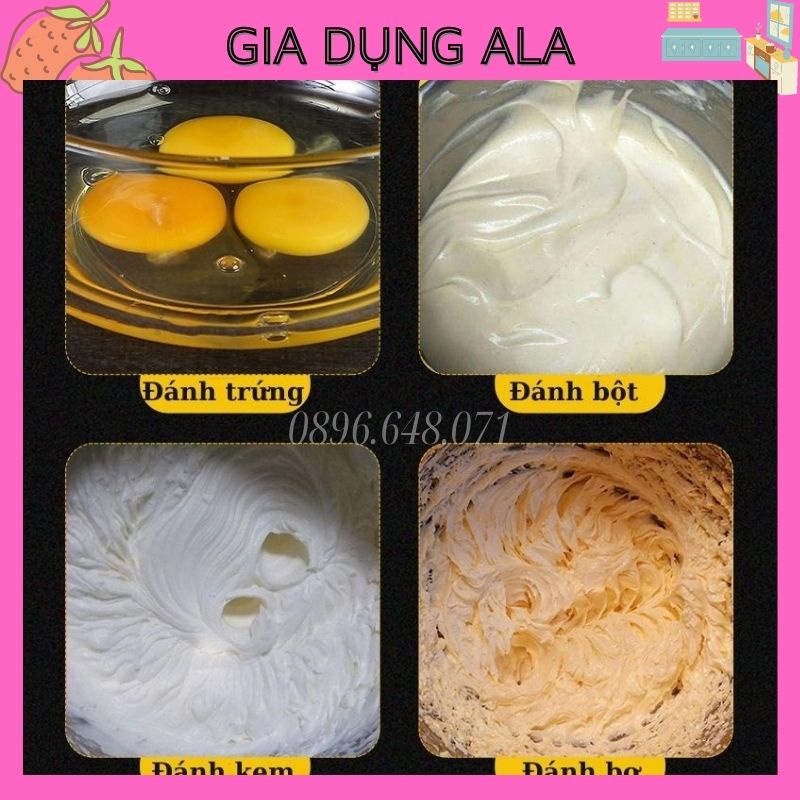 - Dụng cụ đánh trứng có công dụng: Dùng để tạo bọt, đánh bông kem, đánh trứng sữa, máy trộn bột, máy đánh kem dụng cụ làm bánh bằng cách ấn trục chuyển động lên xuống.