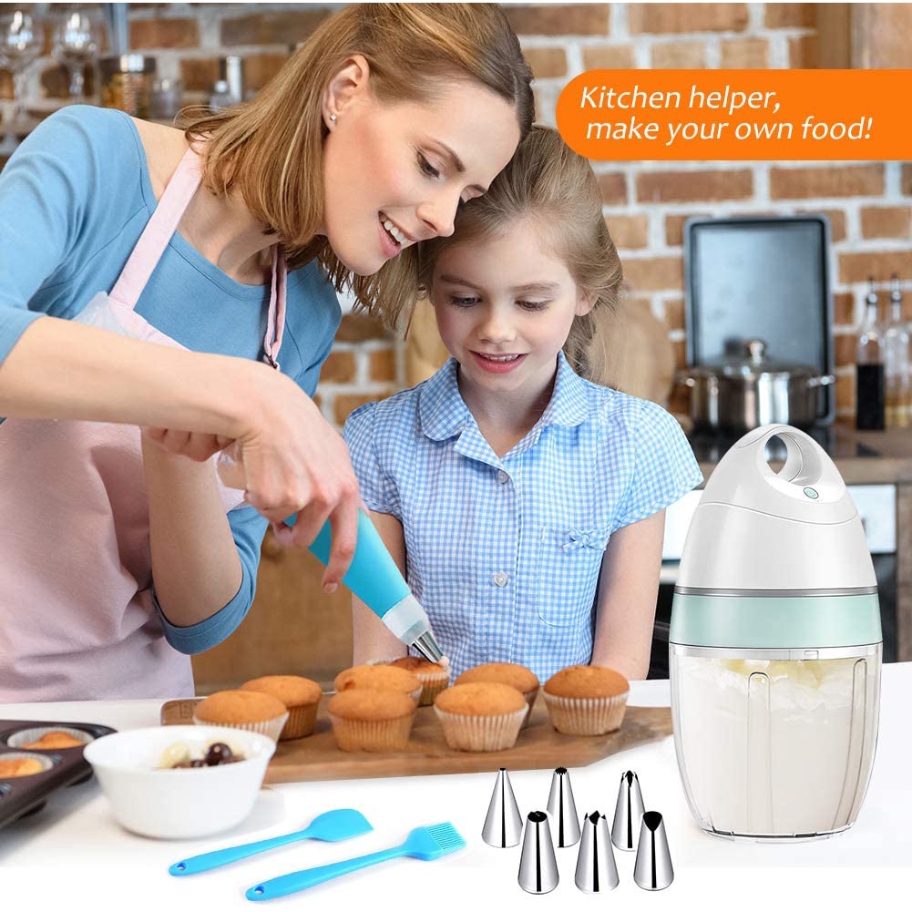 - Máy đánh trứng nhẹ và nhỏ gọn nhẹ, được trang bị động cơ 24 W và bộ trộn bốn thanh, dễ dàng tạo bọt và khuấy, nó cũng có thể được sử dụng như một máy trộn sô cô la, bơ, khoai tây nghiền, lòng trắng trứng, mứt, kem và thậm chí được sử dụng như một máy đánh sữa bằng điện, có thể được sử dụng để đáp ứng các loại nướng khác nhau.