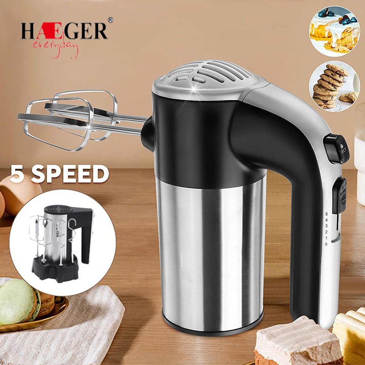Máy đánh trứng cầm tay HAEGER 5 cấp độ, thiết lập 2 đầu đánh