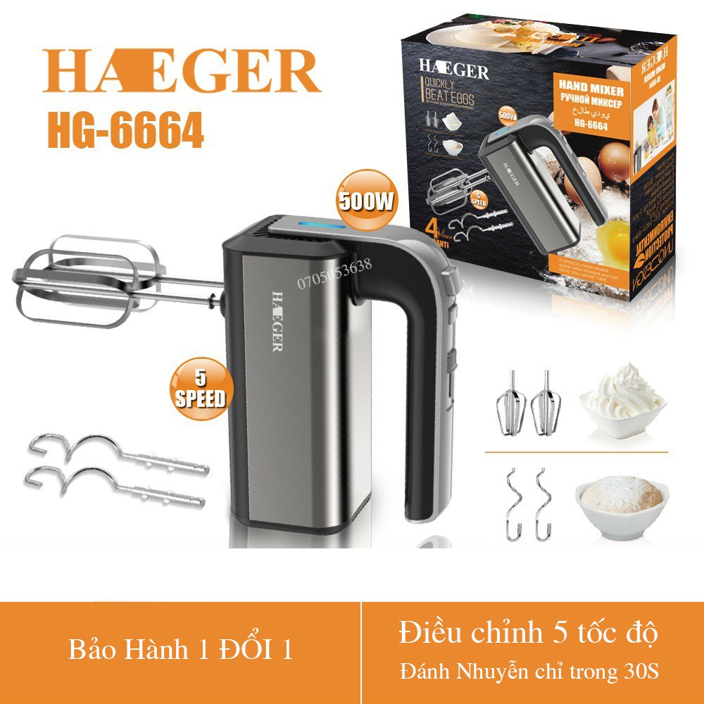 Máy đánh trứng cầm tay HAEGER 500W đánh kem, trộn bột trong 30S có 5 tốc độ điều chỉnh chuyên dụng MDT01
