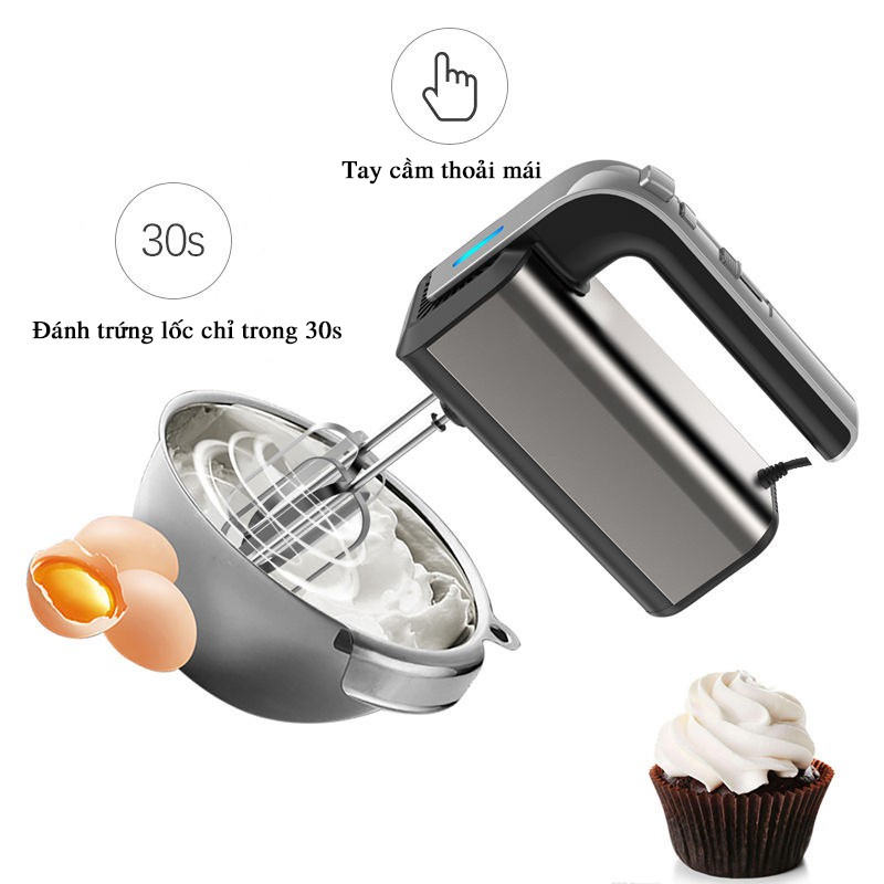 + Máy đánh trứng công suất cực lớn 500W giúp những người đam mê làm bánh,làm kem,món trứng,có thể đánh kem, khuấy bột làm bánh,đánh trứng... nhanh chóng mềm,mịn thì đây là sự lựa chọn hoàn hảo.