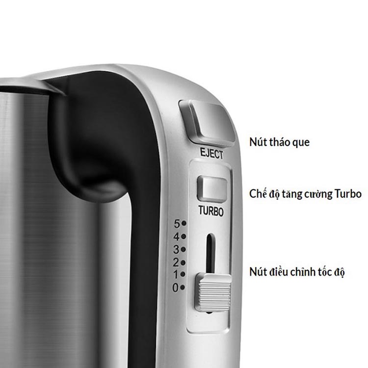 – Bắt đầu vặn tốc độ đánh trứng ở mức 1, tăng lên từ từ đến khi đạt tốc độ mong muốn.