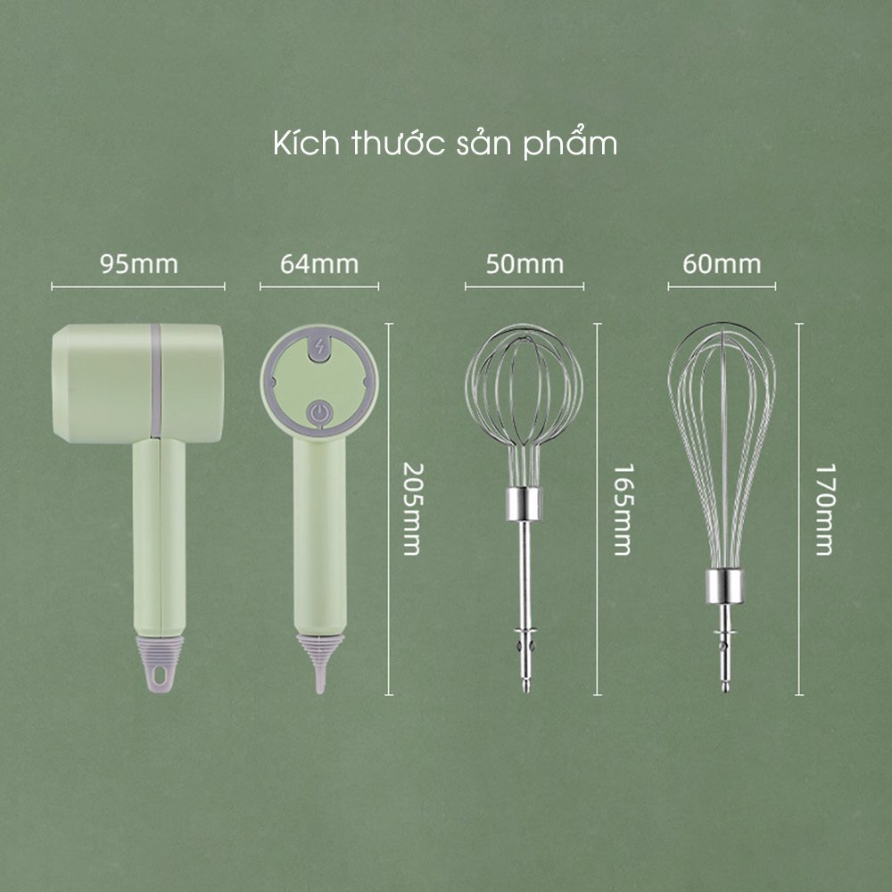 Máy đánh trứng cầm tay không dây - máy đánh trứng làm bánh làm kem chuyên nghiệp vận hành êm ái sạc pin dễ dàng