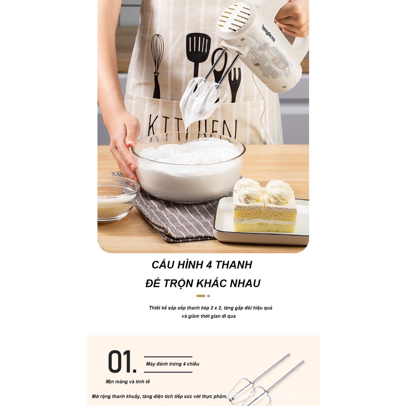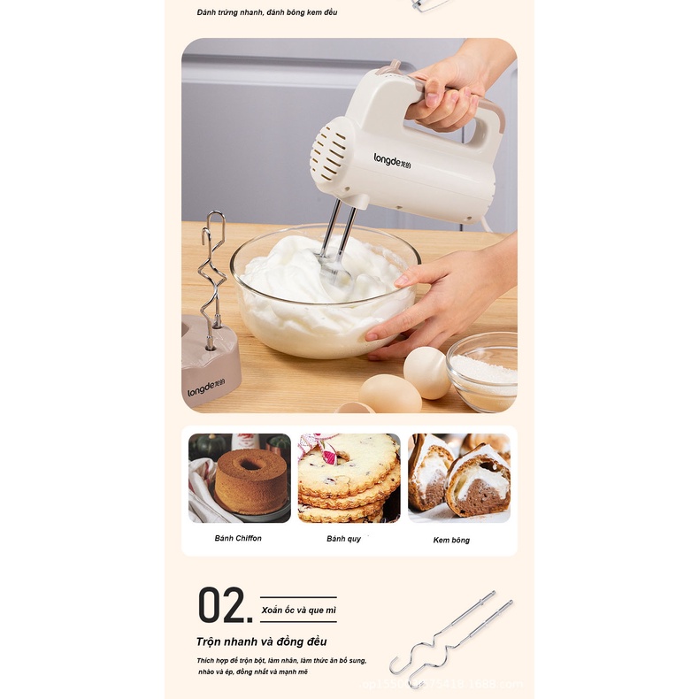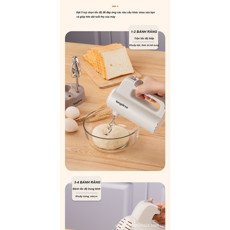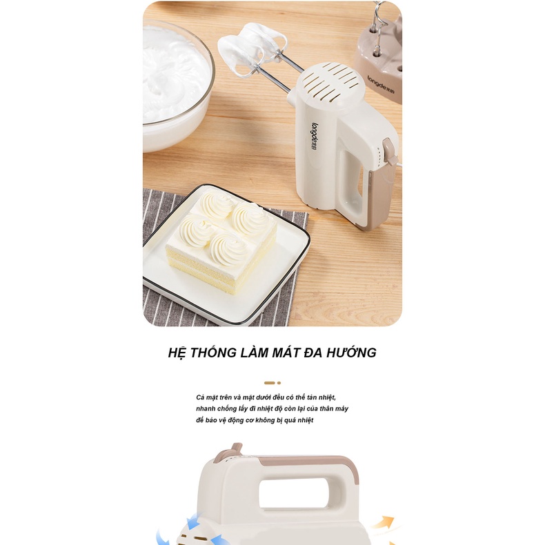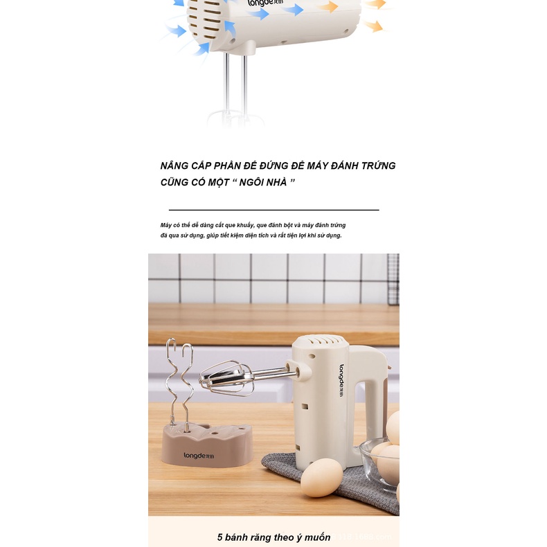 Giới thiệu Máy đánh trứng cầm tay Longde 5 cấp độ công suất lớn - Thép không gỉ bền bỉ - Hàng chính hãng