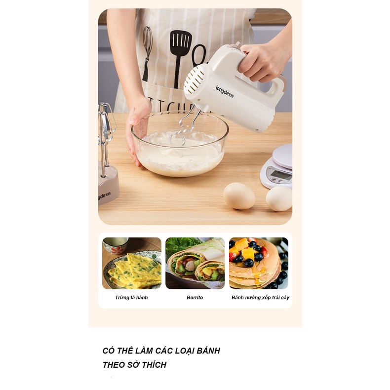 Thiết Bị Điện Gia Dụng > Đồ gia dụng nhà bếp > Máy ép, Xay sinh tố & Máy làm sữa đậu nành || Máy đánh trứng cầm tay Longde 5 cấp độ công suất lớn - Thép không gỉ bền bỉ - Hàng chính hãngCòn hàng