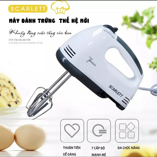 Giới thiệu Máy Đánh Trứng Cầm Tay Máy Đánh Trứng Mini Cầm Tay Scarlett 7 Tốc Độ Cực Mạnh - Hoạt Động Êm Ái