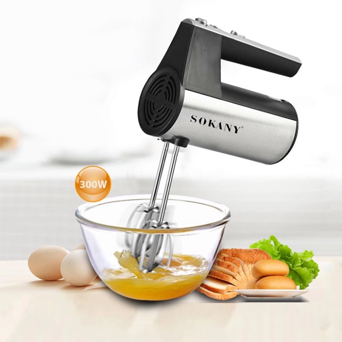 - Máy đánh trứng, nhào bột Sokany SOKANY-6638 công suất 300W hoạt động mạnh mẽ với 5 tốc độ cho khả năng thực hiện nhiều chức năng như nhào bột, đánh kem, đánh trứng và các loại thực phẩm khác. Nhờ đó, việc chế biến những chiếc bánh thơm ngon tại nhà sẽ trở nên đơn giản và tiện lợi hơn rất nhiều.