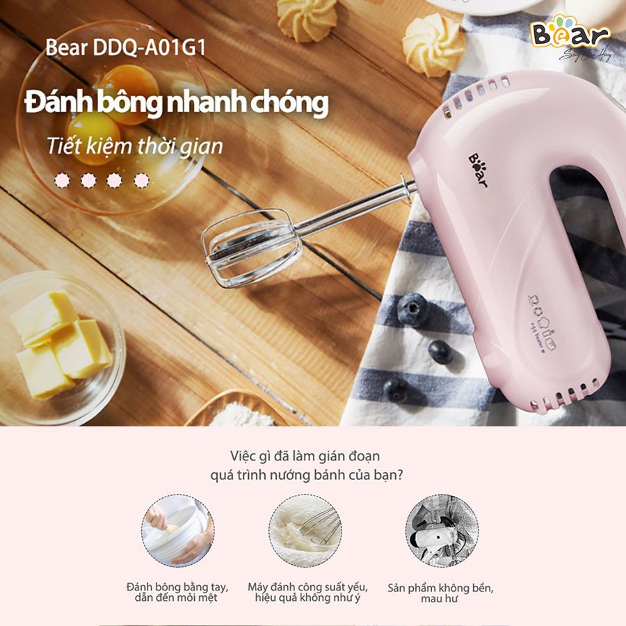 Giới thiệu [Mã ELHA22 giảm 5% đơn 300K] Máy đánh trứng cầm tay, Máy trộn bột Bear DDQ-B02L1 và Bear DDQ-A01G1 chính hãng