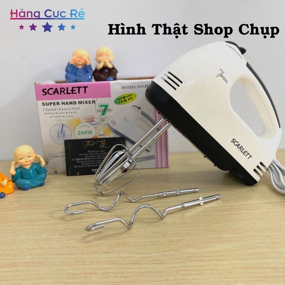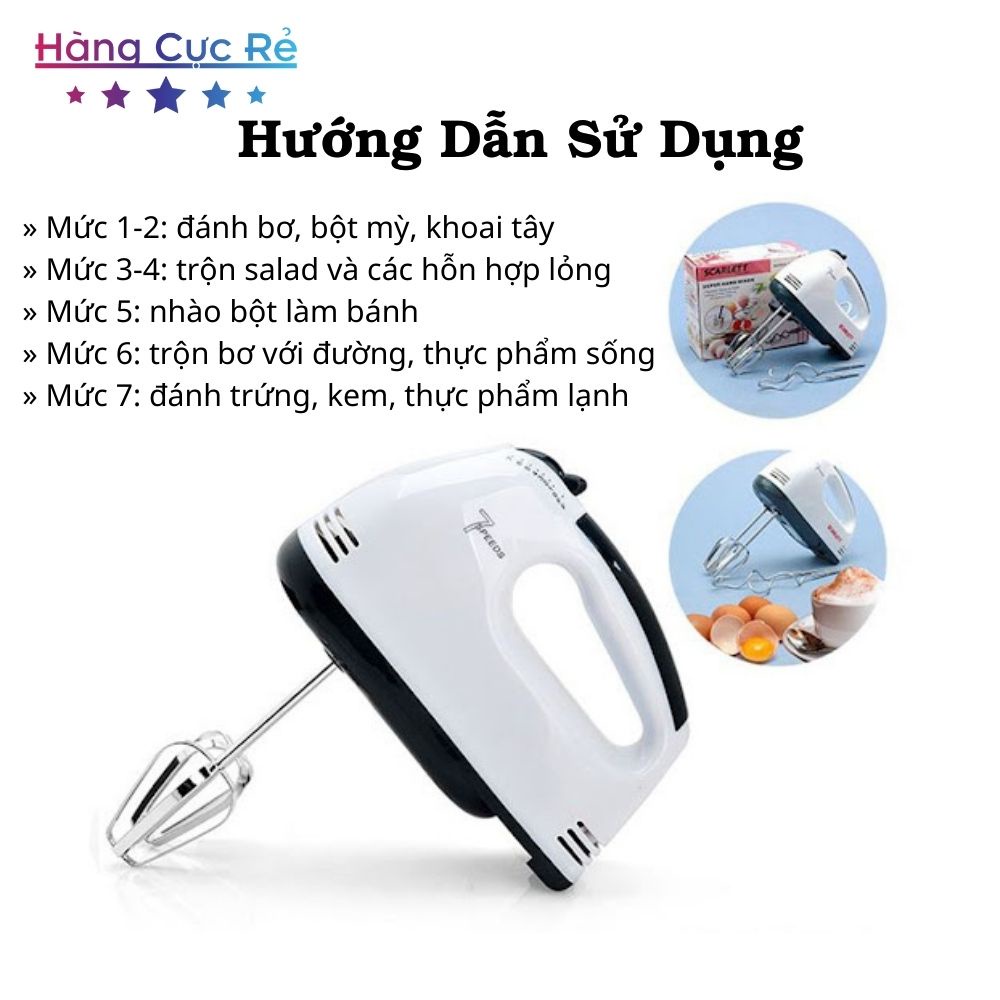 - Tên sản phẩm: Máy đánh trứng cầm tay mini 7 tốc độ công suất 180W, trộn bột đánh kem Scarlett - Shop Hàng Cực Rẻ
