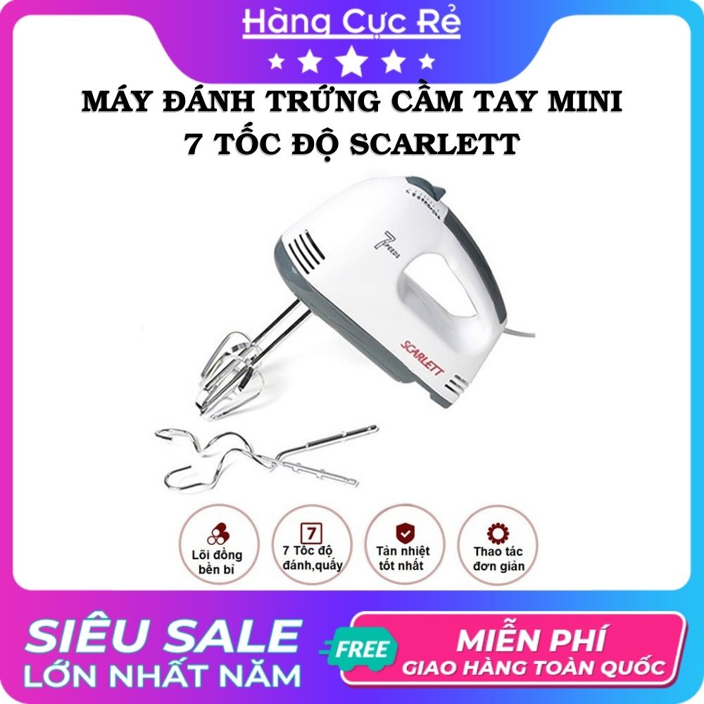 Máy đánh trứng cầm tay mini 7 tốc độ công suất 180W, trộn bột đánh kem Scarlett - Shop Hàng Cực RẻĐây là chiếc máy đánh trứng cầm tay mini tuyệt vời cho các mẹ. Là dạng máy cầm tay, nên các mẹ có thể đánh trứng ở bất kỳ đâu: trong chén to, trong ly/cốc, trong nồi... đều được.
