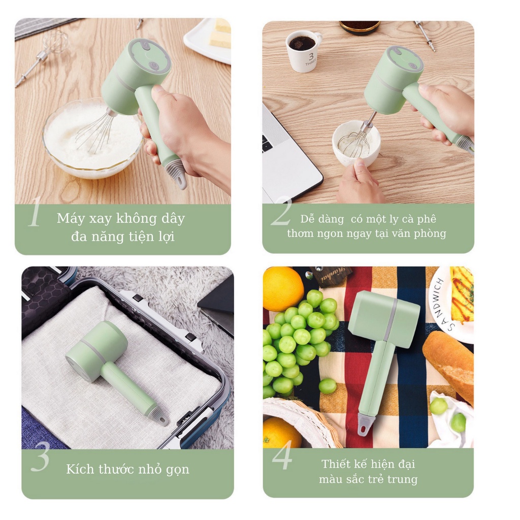 Thiết Bị Điện Gia Dụng > Đồ gia dụng nhà bếp > Máy ép, Xay sinh tố & Máy làm sữa đậu nành || Máy đánh trứng cầm tay mini đa năng Ampheron đánh trứng siêu tiện lợi xay hành, tỏi, rau củ quả, thịt xạc điện MDT01Còn hàng