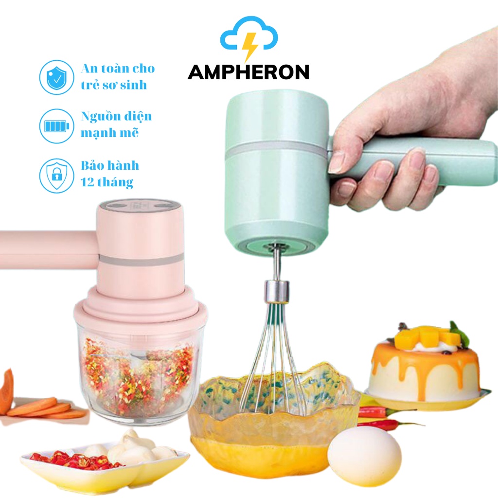 Máy đánh trứng cầm tay mini đa năng Ampheron đánh trứng siêu tiện lợi xay hành, tỏi, rau củ quả, thịt xạc điện MDT01
