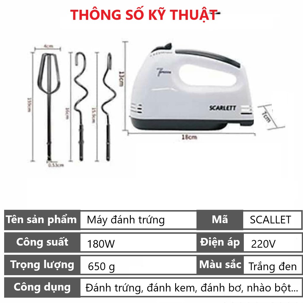 Thiết Bị Điện Gia Dụng > Đồ gia dụng nhà bếp > Máy trộn thực phẩm || Máy đánh trứng cầm tay mini làm bánh 7 tốc độ Scarlett Công suất 260W Cực kỳ tiện lợiCòn hàng