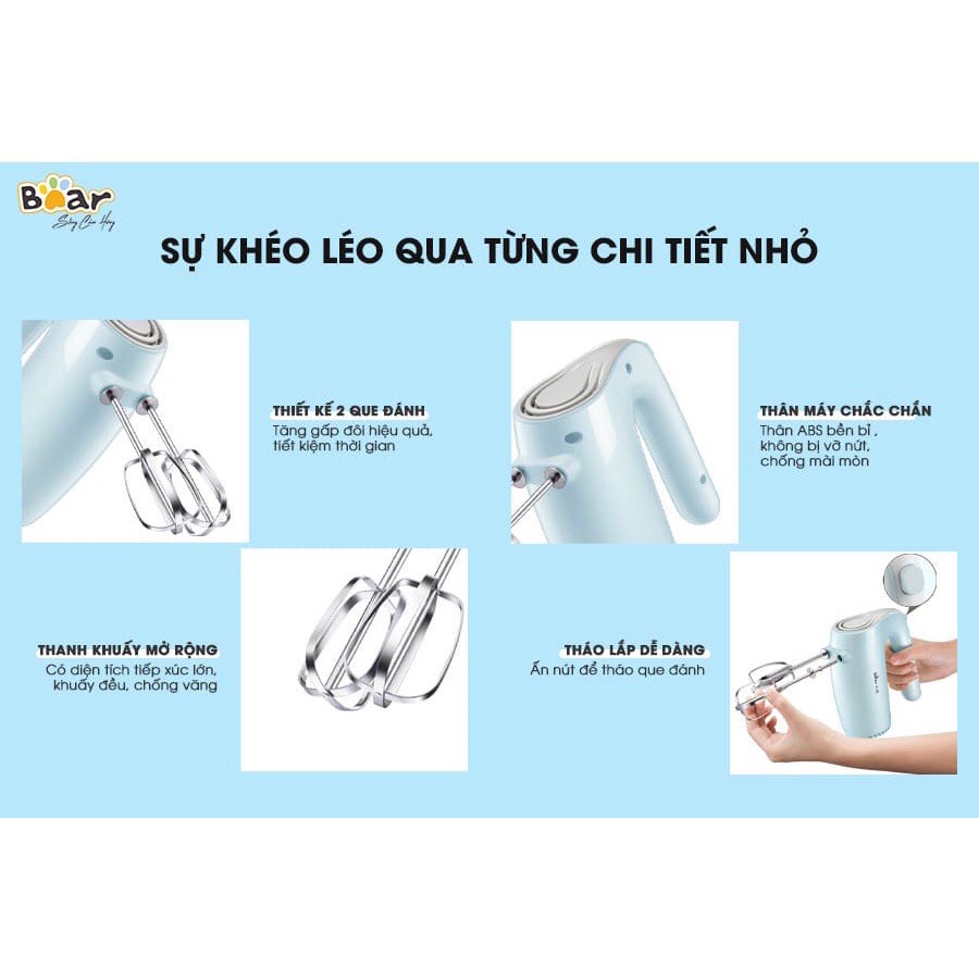 Giới thiệu Máy đánh trứng cầm tay mini chính hãng Bear - tích hợp 5 chế độ, que đánh inox chống gỉ - L02212213