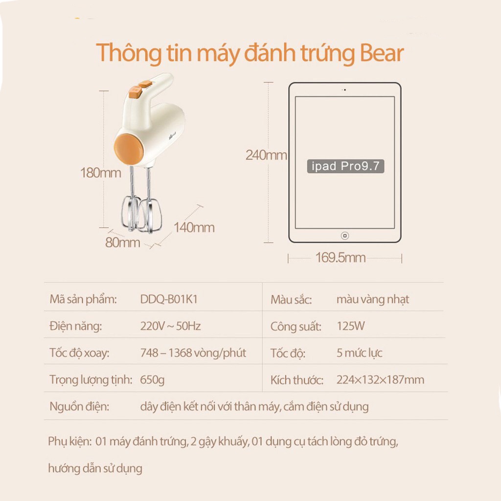 • Tên sản phẩm: Máy đánh trứng Bear DDQ- B01K1
