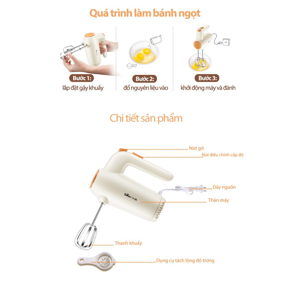 Tên sản phẩm: Máy đánh trứng cầm tay Bear DDQ-B01K1 công suất cao chống tê tay khử mùi đảm bảo sức khỏe an toàn