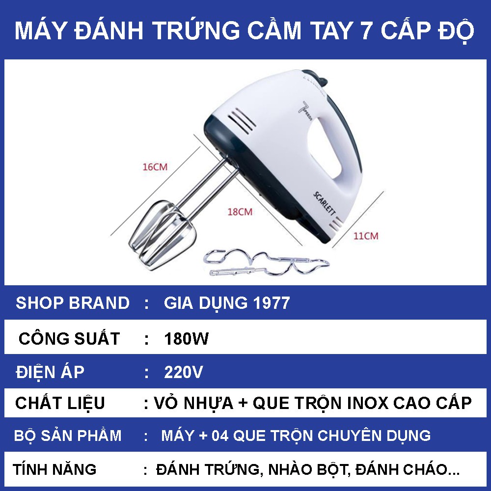 - Tên sản phẩm: Máy đánh trứng, máy nhào bột 7 cấp độ