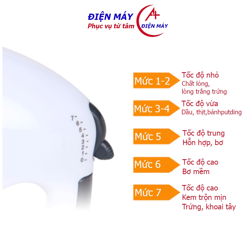 Máy Đánh Trứng Cầm Tay Mini Trộn Bột 7 Tốc Độ Công Suất 180WCAM KẾT từ Điện Máy A+
